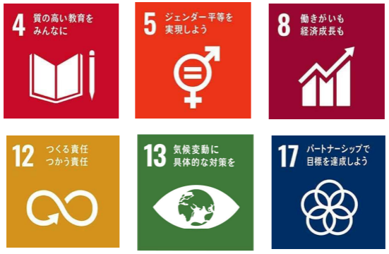 「質の高い教育」「ジェンダー平等」「働きがいと経済成長」「つくる責任使う責任」
